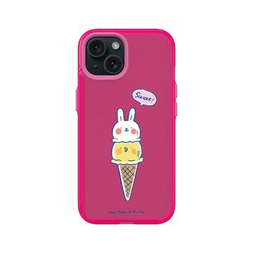 iPhone 15 Clear 粉漾桃 - 懶散兔與啾先生 Lazy Rabbit and Mr.Chu - 冰淇淋