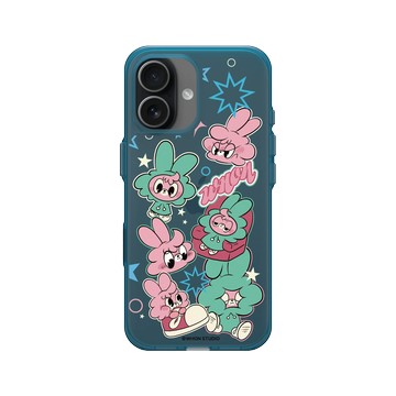 iPhone 17 Clear (相機按鈕) 夜幕藍 - 懶散兔與啾先生 Lazy Rabbit and Mr.Chu - 泡溫泉