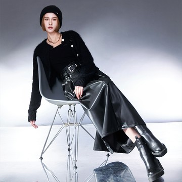 皮革立體打摺長裙