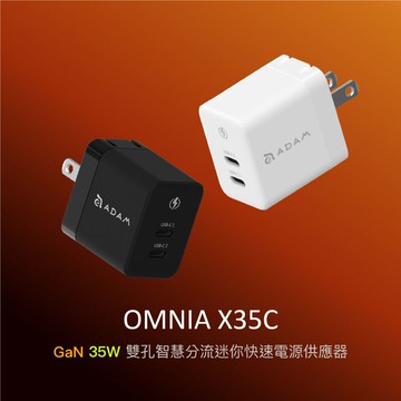 ADAM elements 亞果元素 GaN 35W雙孔迷你快速電源供應器 USB-C/USB-A 黑色 1個