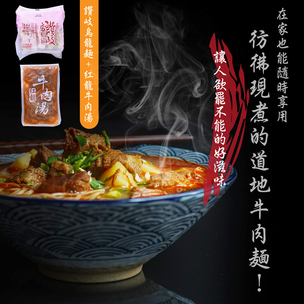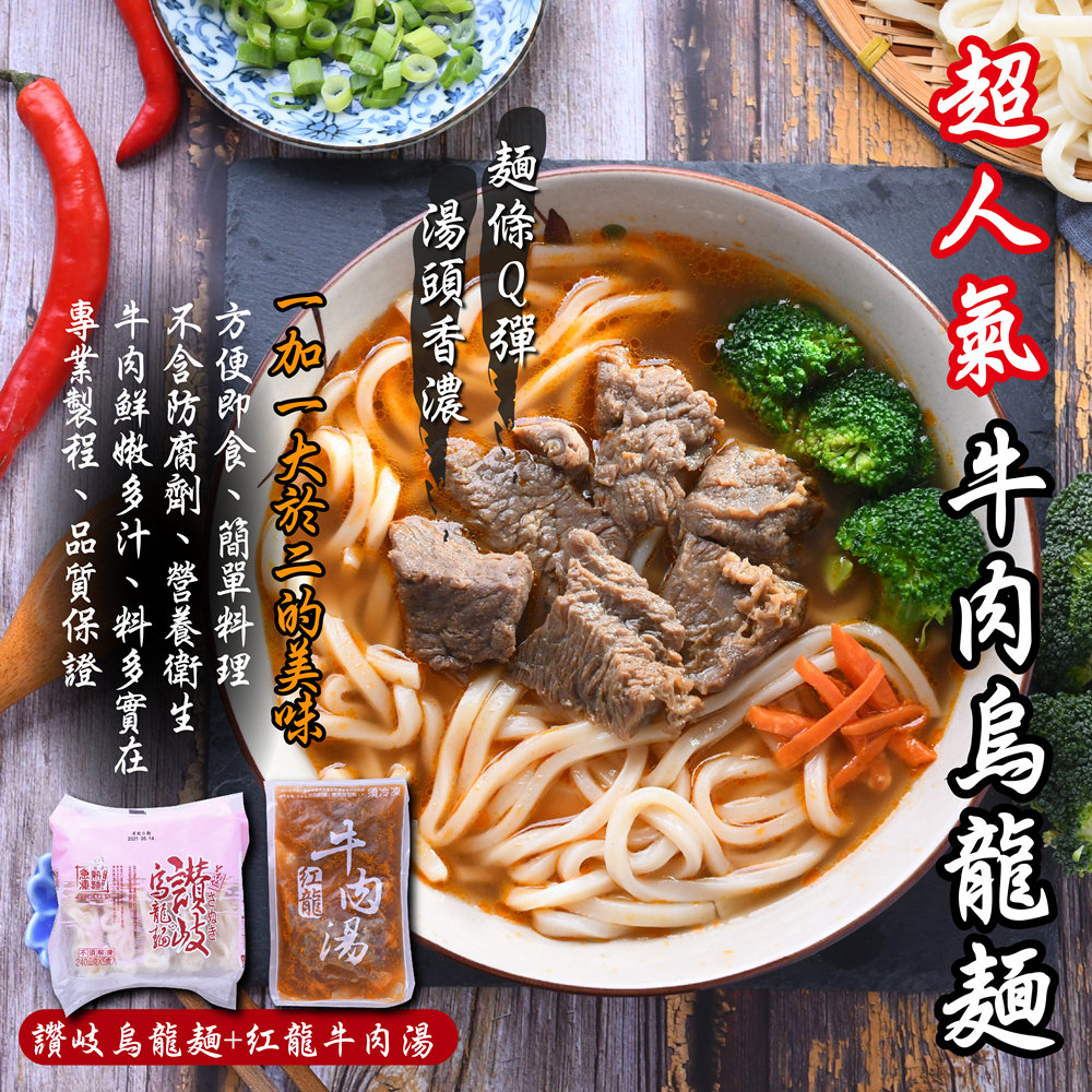 【牛肉烏龍麵】紅龍牛肉湯X10包+讚岐烏龍麵X10片(組合)