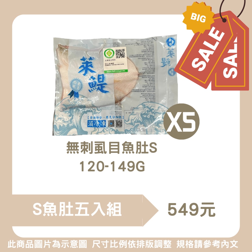 2.商品規格 : 產銷履歷白金虱王魚肚S(120-149g)*5