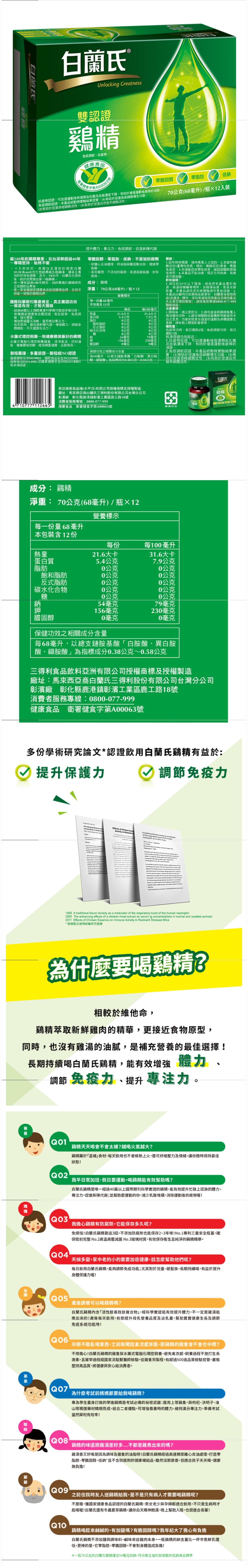 【白蘭氏】雙認證雞精 70g*12入 (9/6開始出貨)