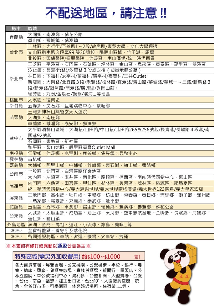 ◆運送範圍以通盈官方網站配送地區為主