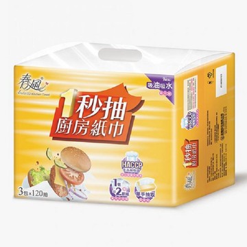 [限量搶購]春風抽取式廚房紙巾一秒抽 120抽x3包/串