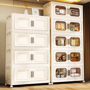 【Mr.Box】78面寬摺疊雙開門五層收納櫃-附滑輪