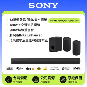 【SONY 索尼】Bar 9 + SA-RS5 + SA-SW5(HT-A9000聲霸家庭劇院組)