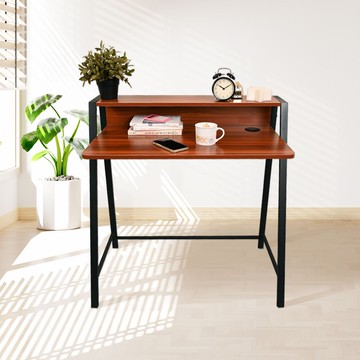 【AOTTO】簡約雙層木紋書桌-80CM(電腦桌 辦公桌 工作桌)