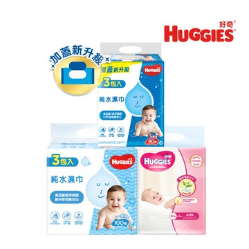 【HUGGIES 好奇】純水嬰兒濕巾加厚型80抽/一般型100抽/綠茶加厚型80抽(18包/箱) 箱購