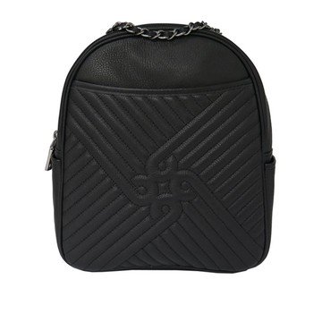 TORY BURCH - 素面皮革翻蓋後背包-黑色