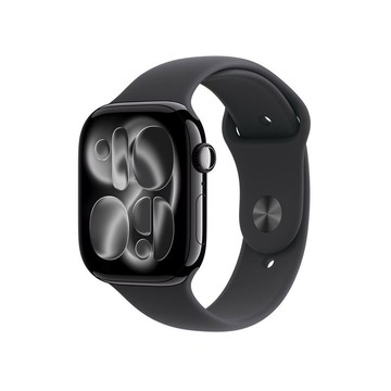 Apple Watch Series 11 (GPS);42 公釐曜石黑色鋁金屬錶殼;黑色運動型錶帶 - S/M