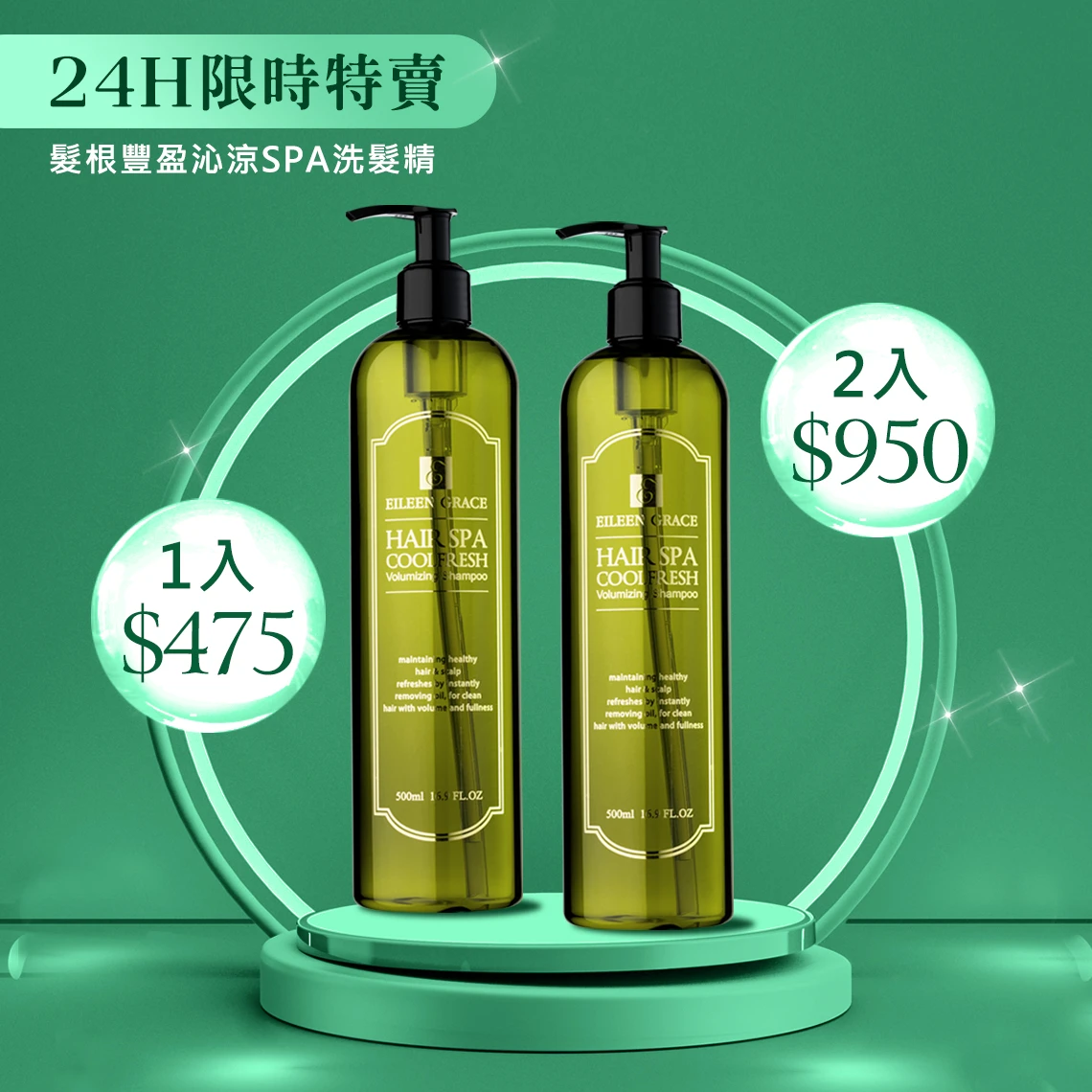 【加1元多1件】可按摩頭皮的 髮根豐盈沁涼精油SPA洗髮精500mlx1 注意:請務必加購$1元之商品檔,否則活動無法生效喔