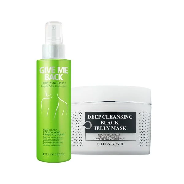 A水楊酸抗痘無痕美體噴霧150ml*1+極淨透碳深層喚白黑凍膜300ml*1