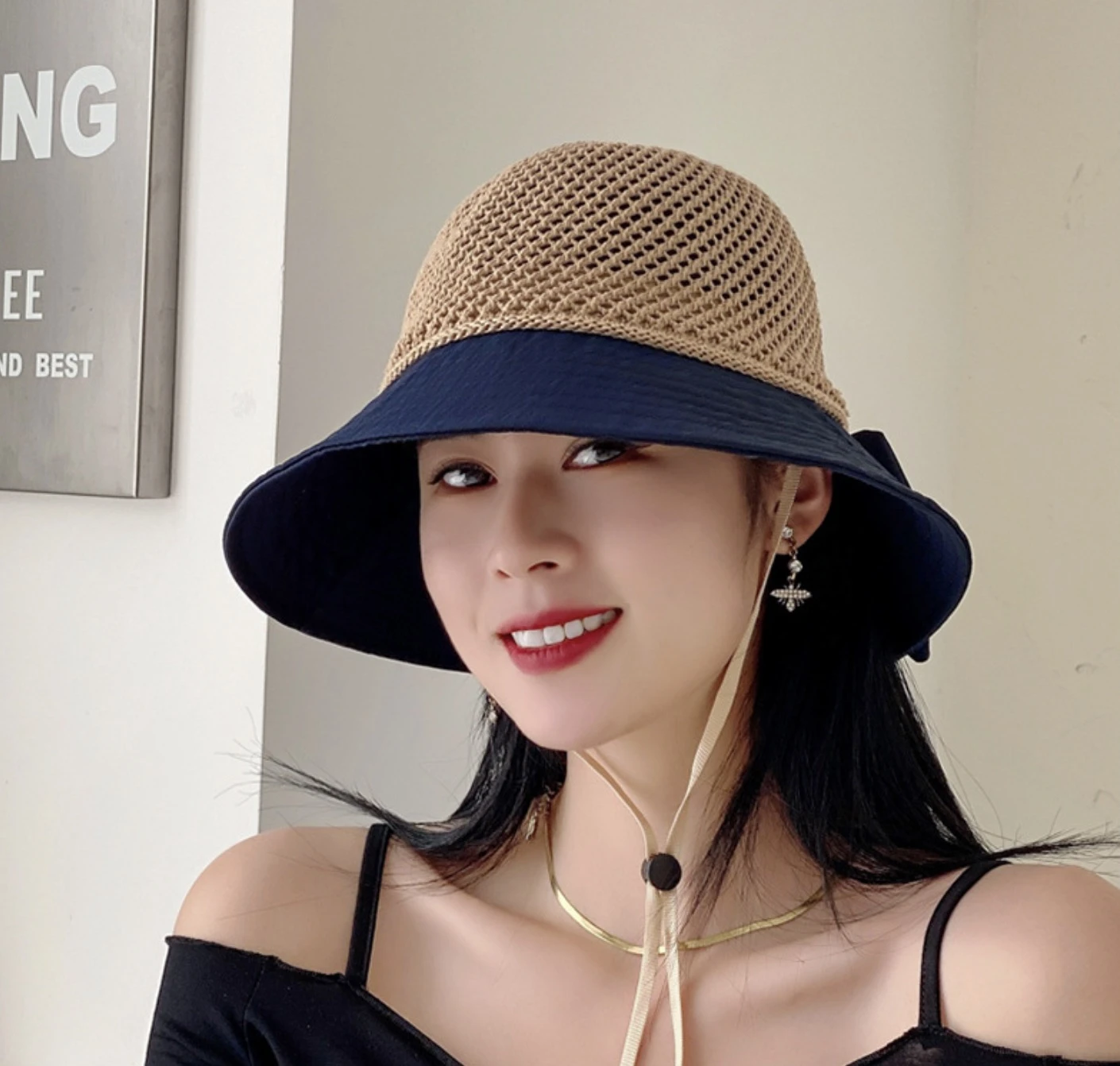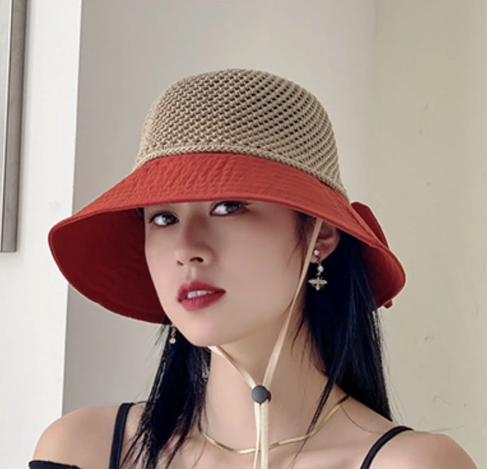 日本透氣亞麻漁夫帽子女針織優雅圓頂太陽帽米色春夏季防曬遮陽帽