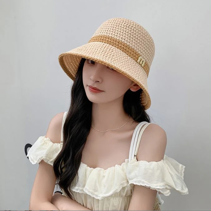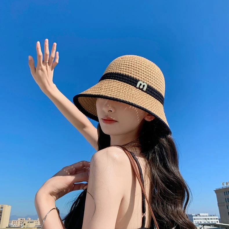 可折疊網紅小香風草帽沙灘帽子女夏天海邊大帽檐防曬遮陽度假大沿1入