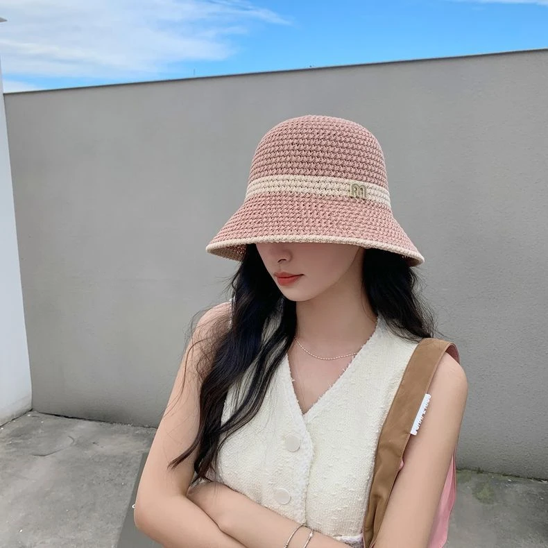 日系拼色邊漁夫帽子女春夏百搭防曬騎車韓版大檐防紫外線旅游盆帽