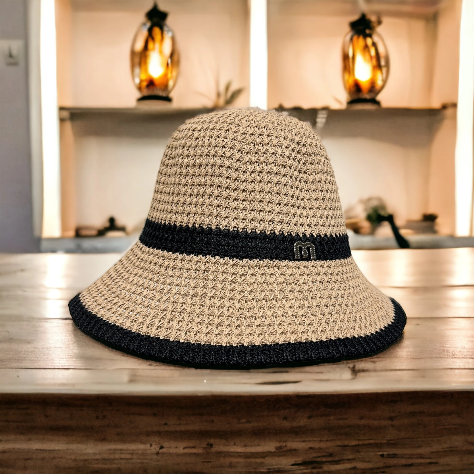 日本設計師款古典優雅蘿莉草帽出游海邊遮陽拉菲草帽女日系遮陽帽1入
