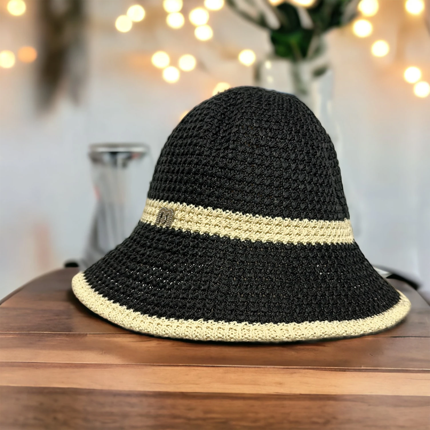 K011 手工編織超短圓頂毛帽水兵帽-黑