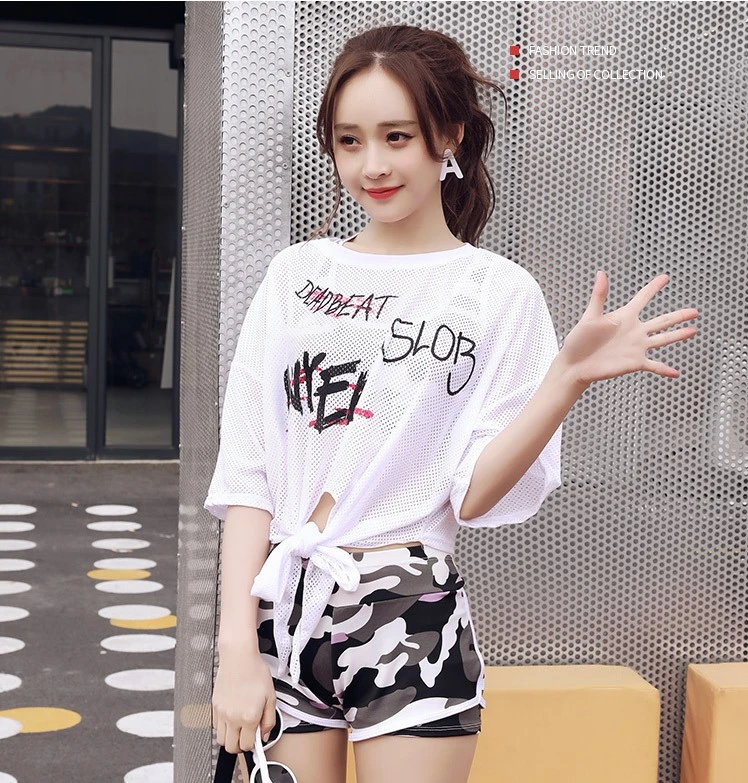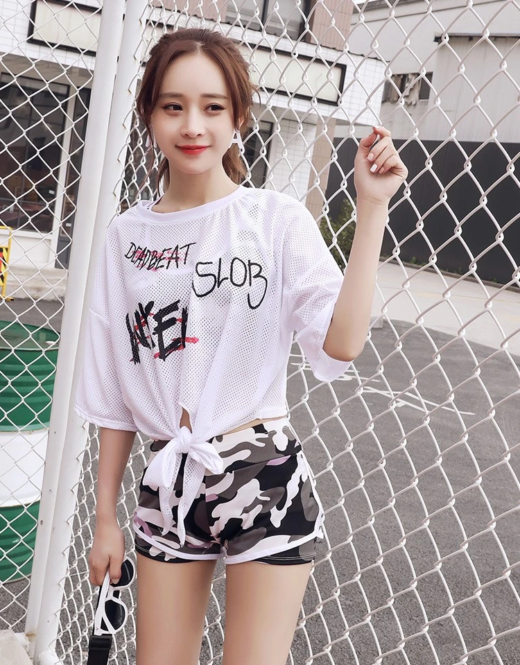 SylCue 性感機車chic設計感運動短款t恤女印花長袖打底衫露臍上衣