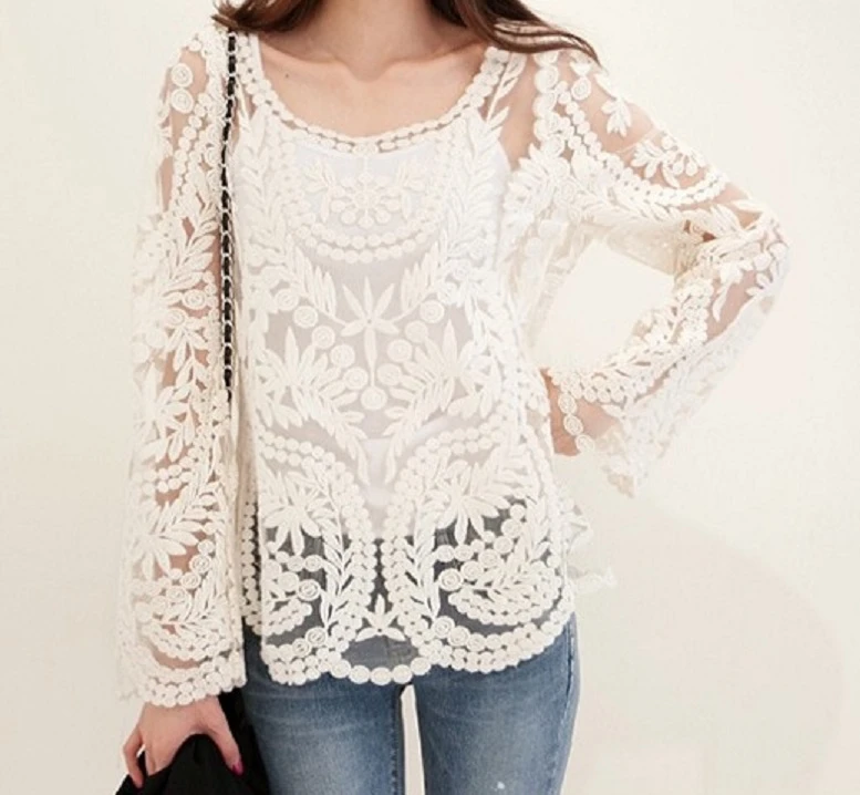 短版鏤空針織罩衫