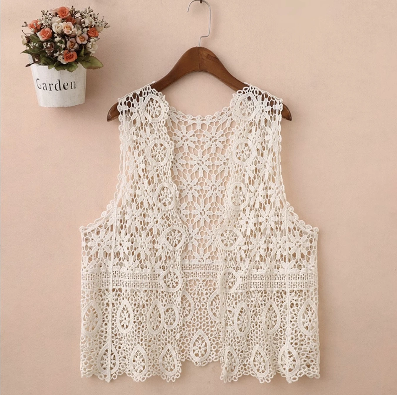 VEN杏色水滴勾花開衫式罩衫
