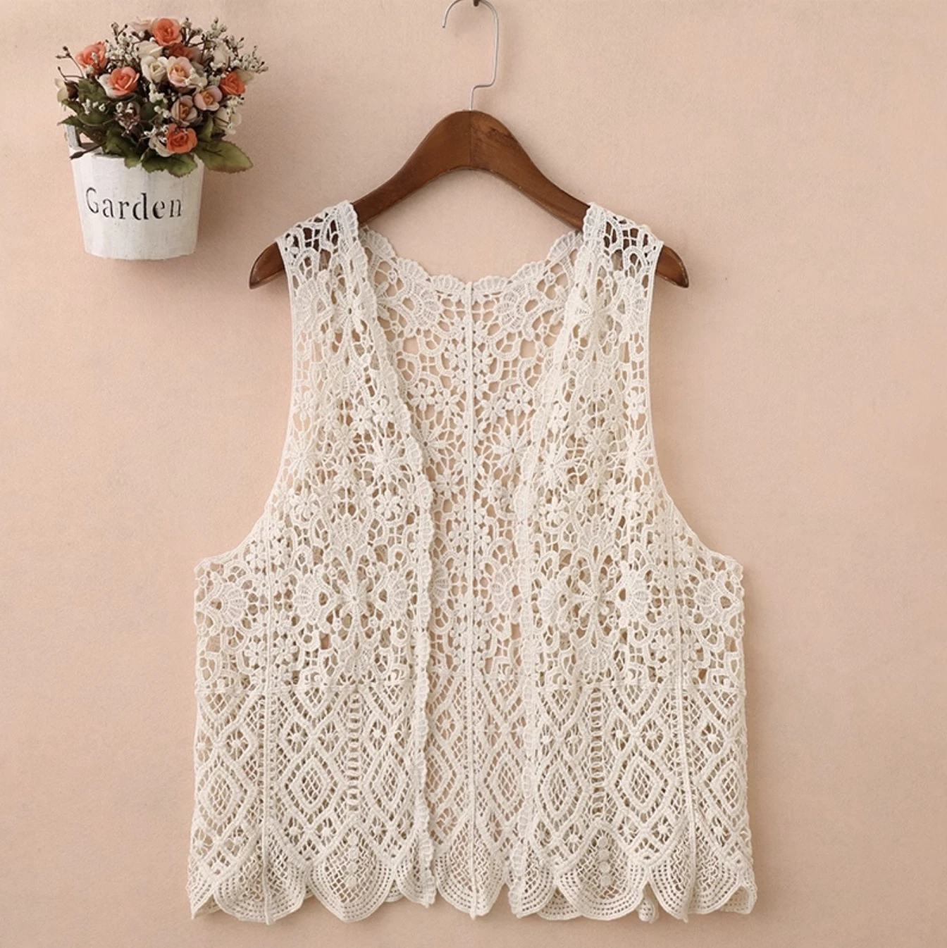 VEN杏色水滴勾花開衫式罩衫