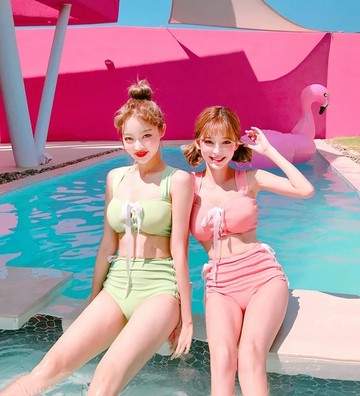 韓國定購2022夏季新款 時髦辣妹風純色洋氣性感分體比基尼泳衣女
