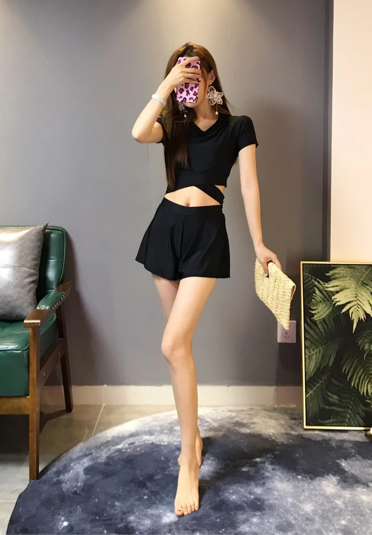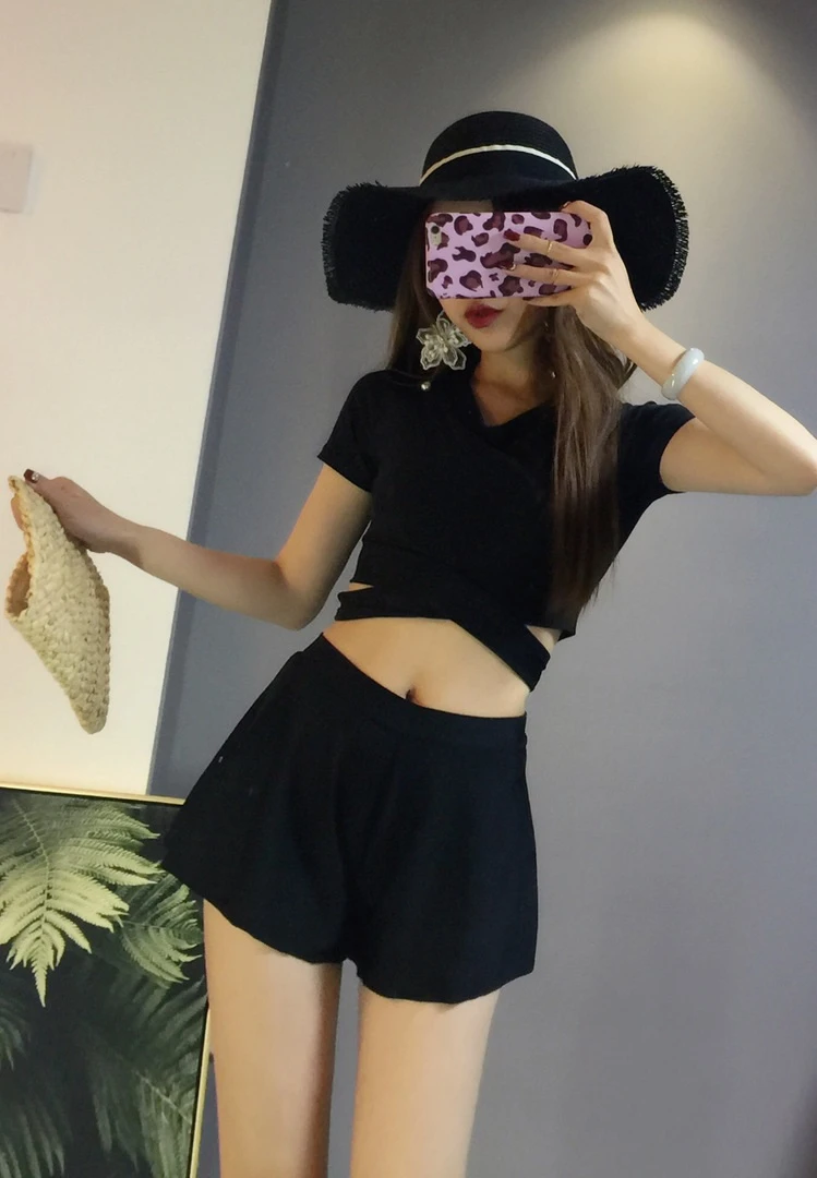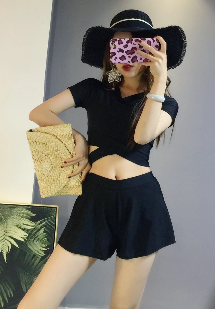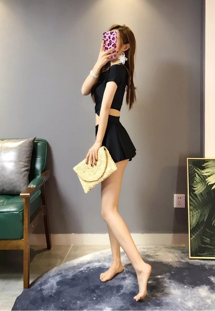 韓國東大門ins風立體特殊面料可愛少女輕奢簡約撞色分體游泳衣女