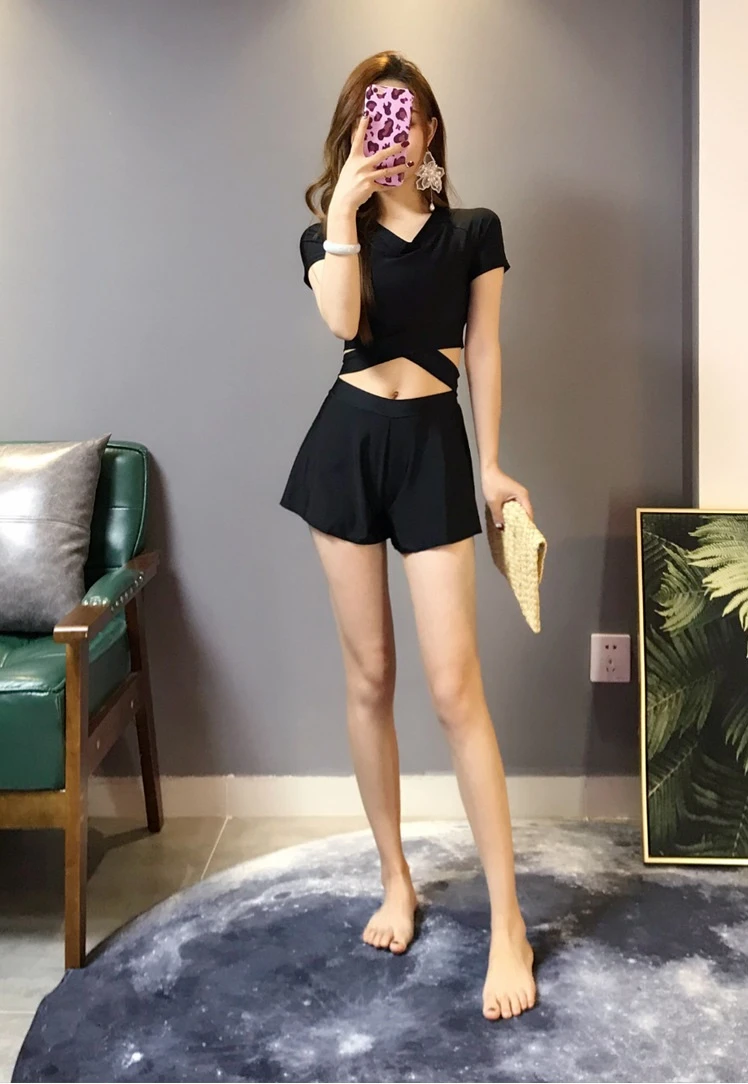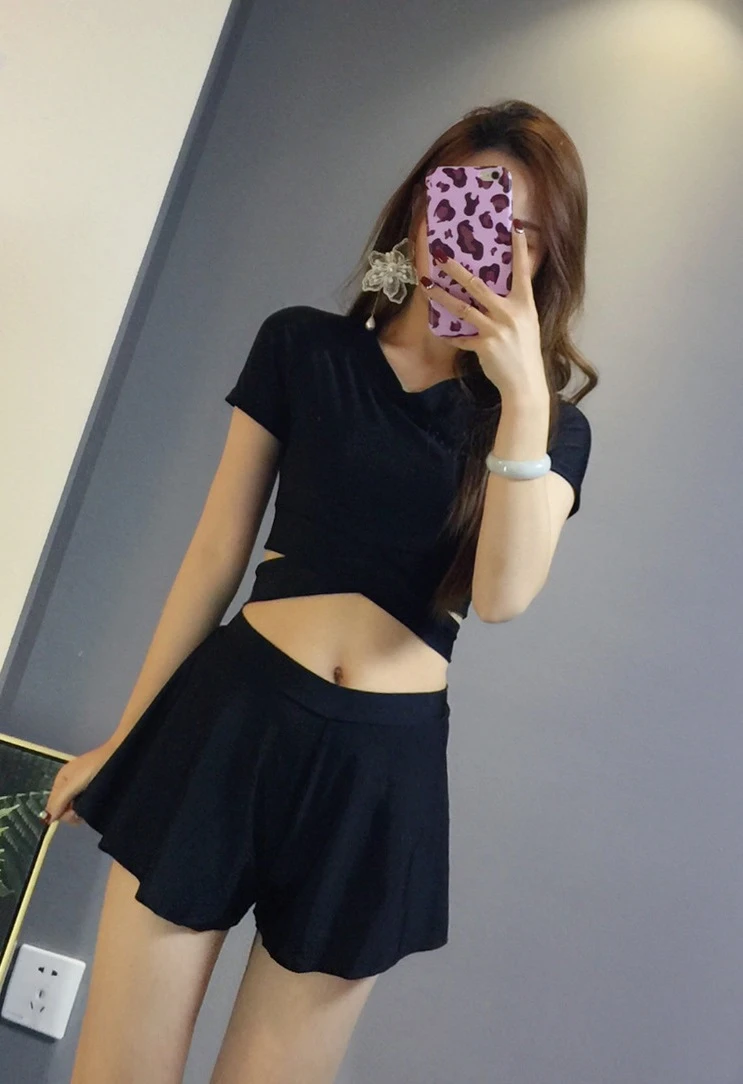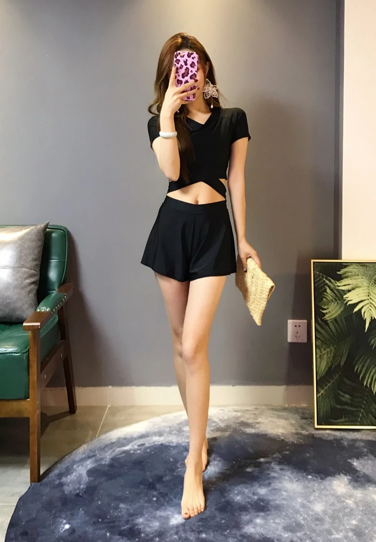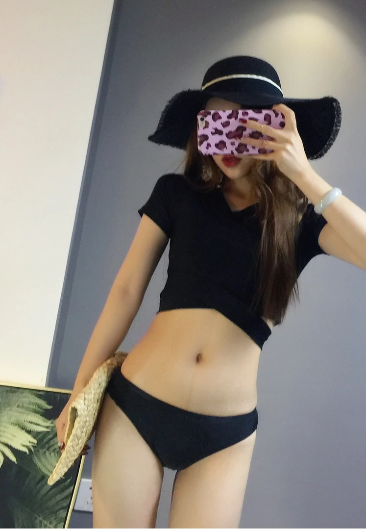 韓國東大門ins風立體特殊面料可愛少女輕奢簡約撞色分體游泳衣女