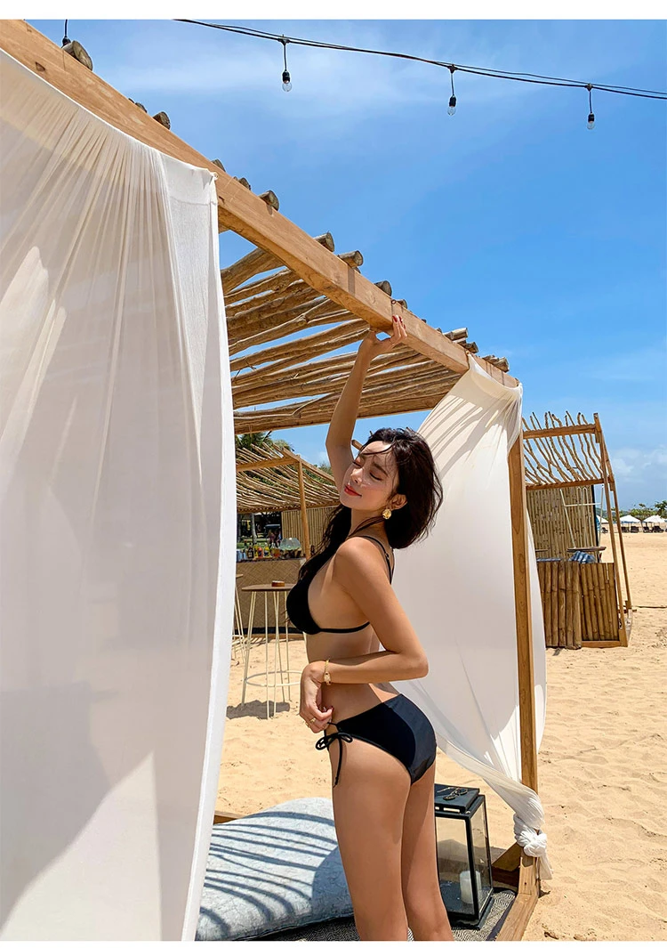 泳衣女分體三點式性感ins黑色三角比基尼鋼托小胸聚攏藝考泡溫泉