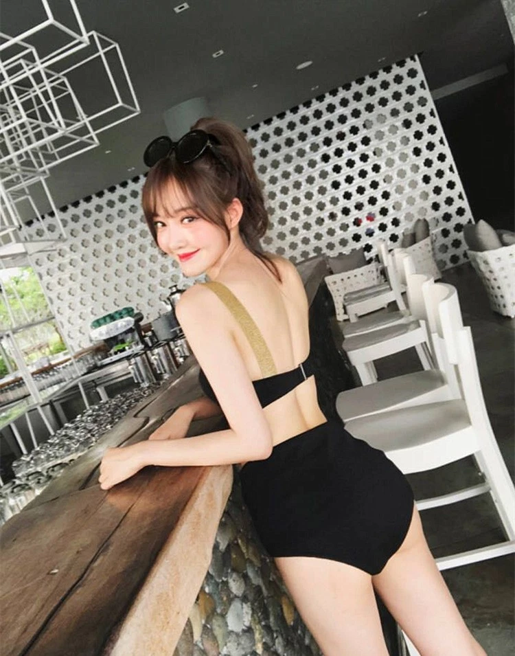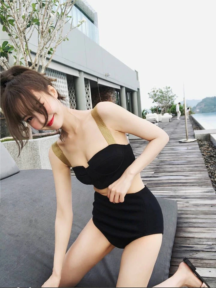 韓國東大門ins風立體特殊面料可愛少女輕奢簡約撞色分體游泳衣女