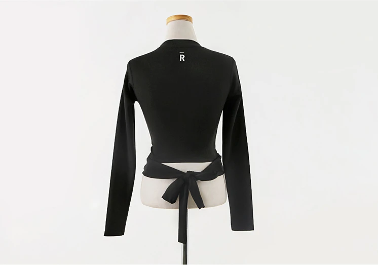 復古港風chic緊身上衣長袖春裝新款顯瘦百搭黑白撞色插肩袖t恤女