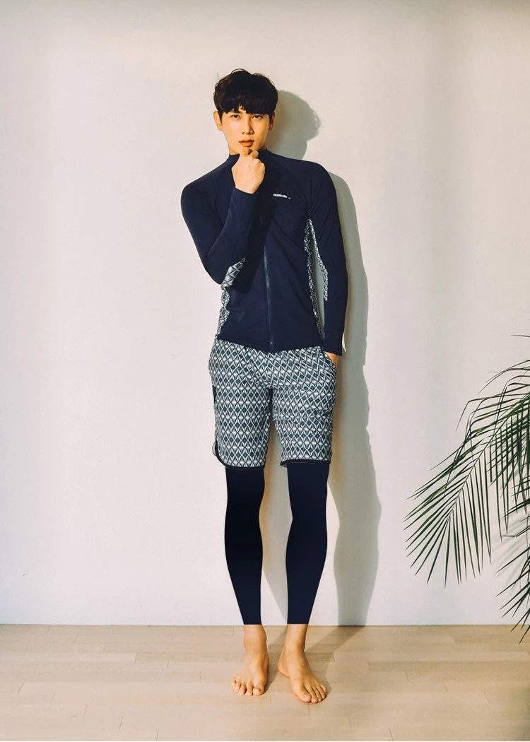 男款3件套(上衣外套+平角短泳褲+彈性長泳褲)