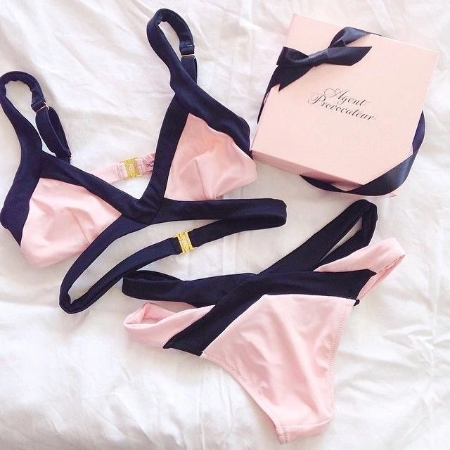 歐美風ins網紅同款泳衣女大小胸聚攏性感復古綁帶比基尼溫泉度假