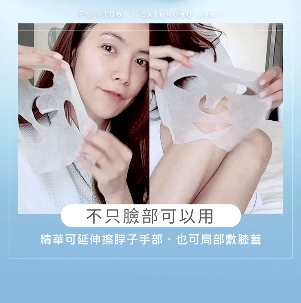 為什麼它能敷久也不乾?因為內含30ml精華,且屬於冰晶質地,濕潤度十足。