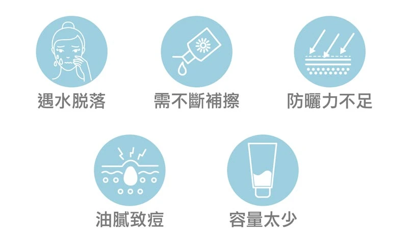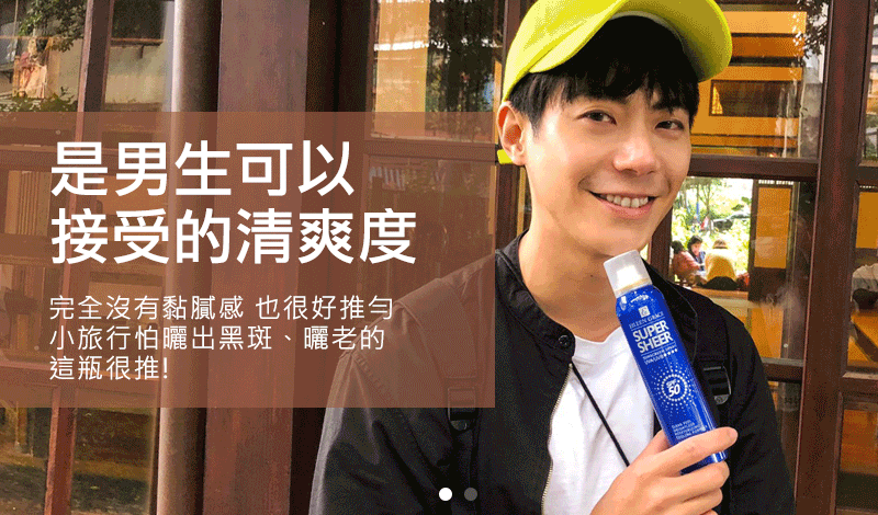 獨創的【粉霧感劑型】,於日曬前15分鐘噴完,不要用力摩擦,都可以牢牢附著,大流汗、下水玩,都很方便。