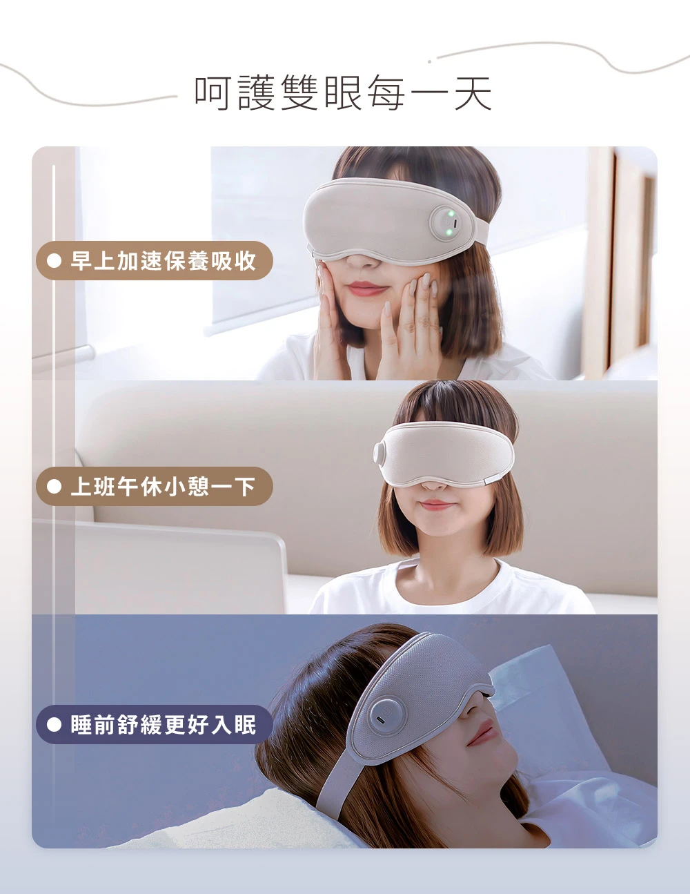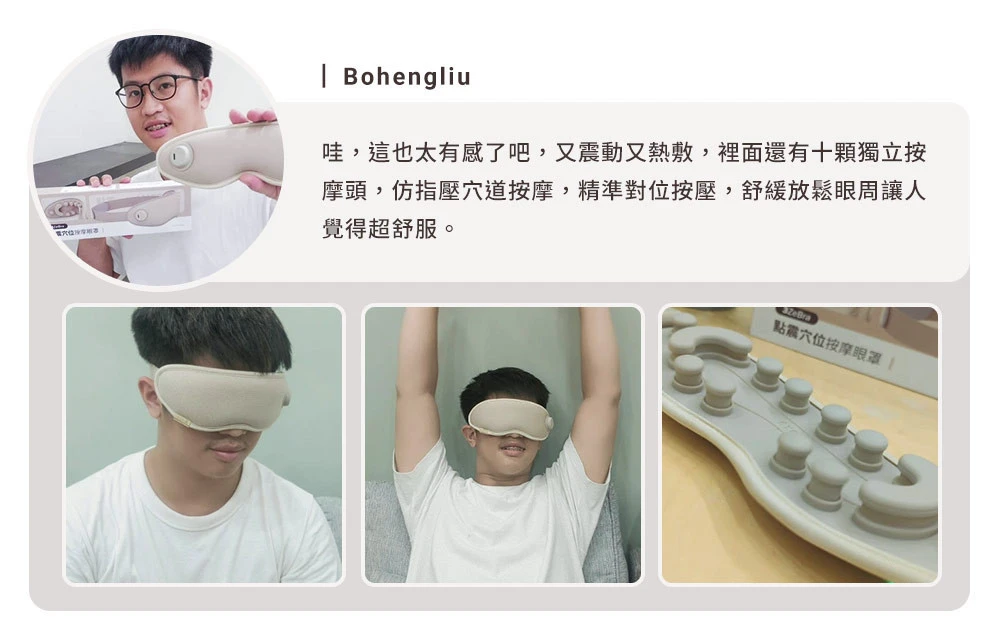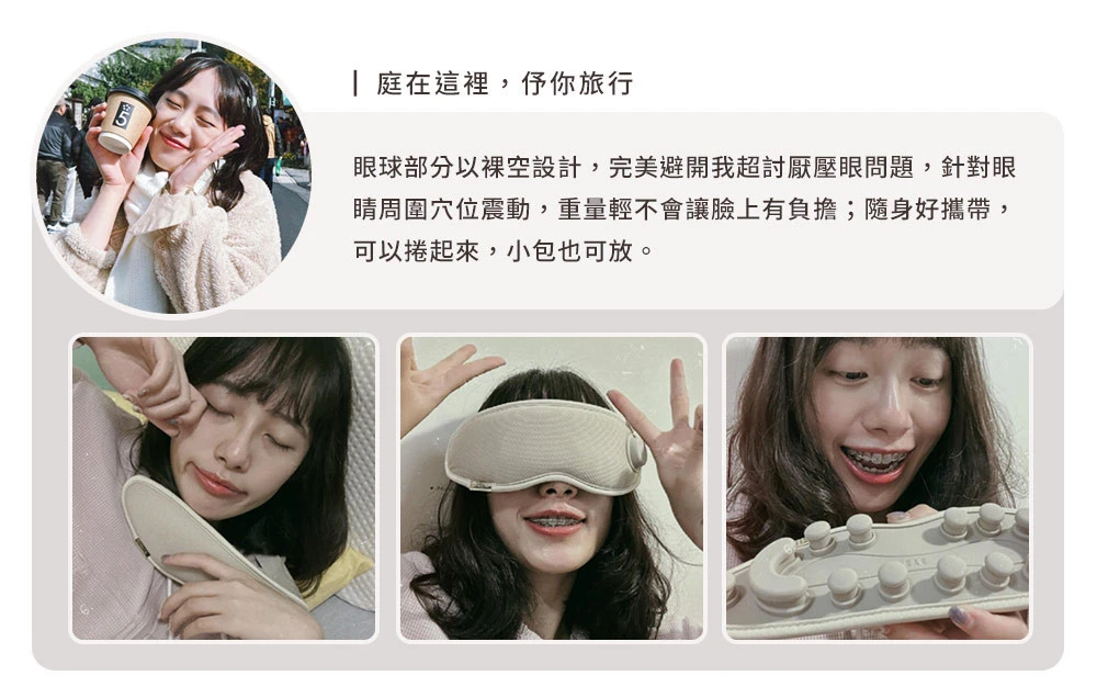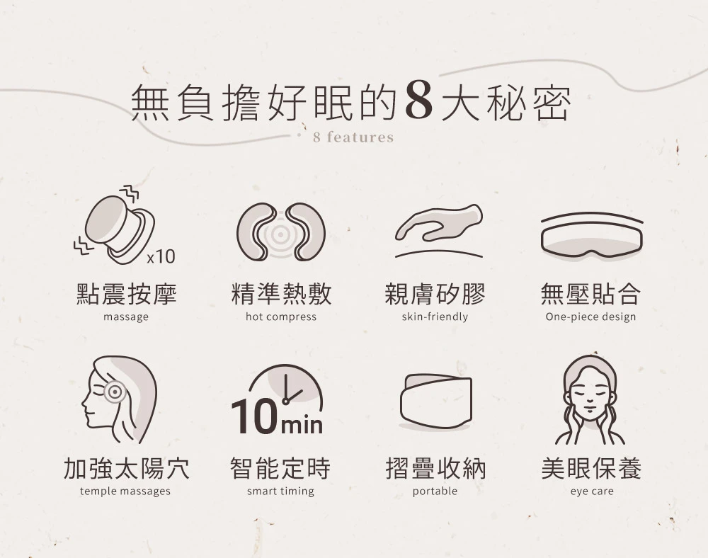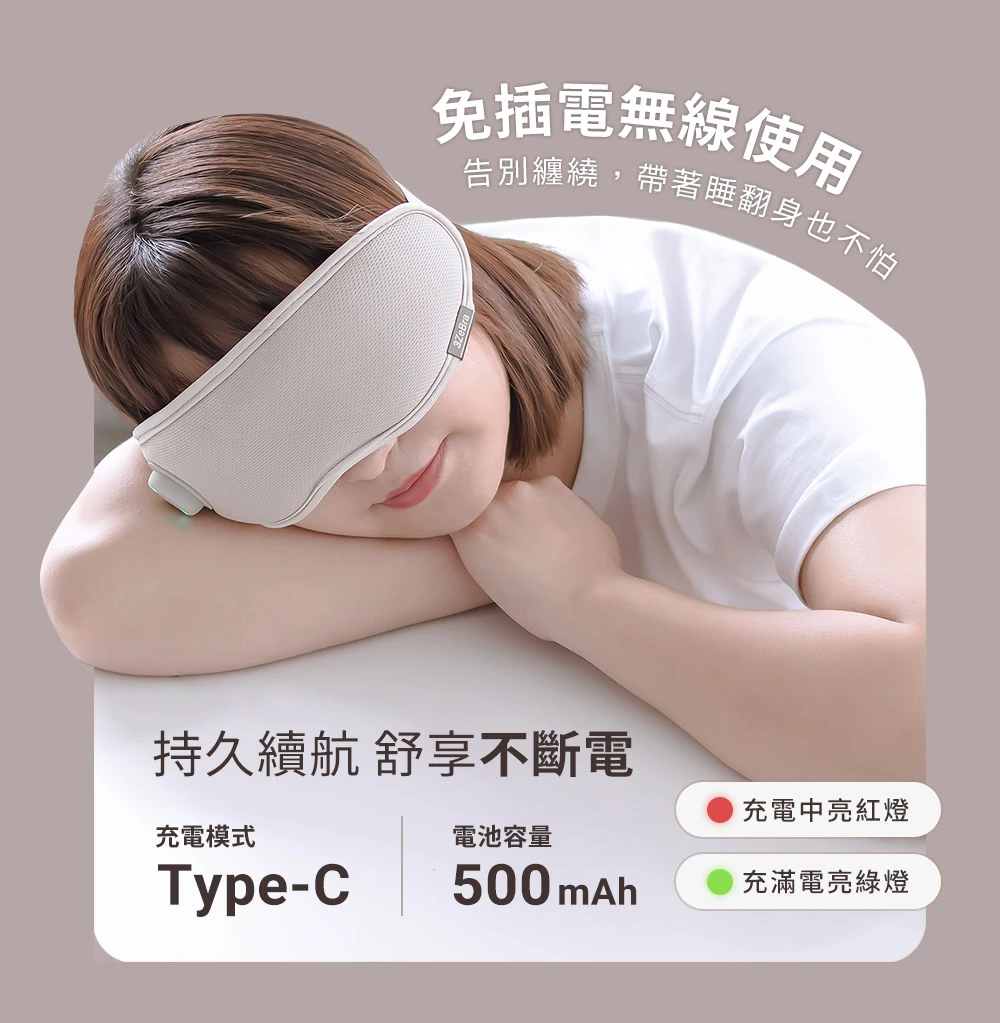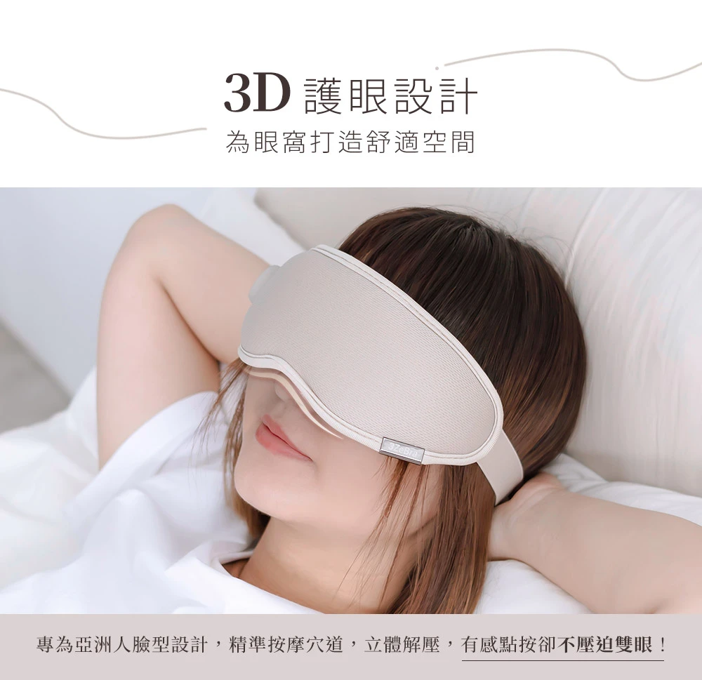 比起硬殼式眼罩,更溫和緊貼雙眼,雙眼無強烈負重感,讓你舒適按摩更好眠。