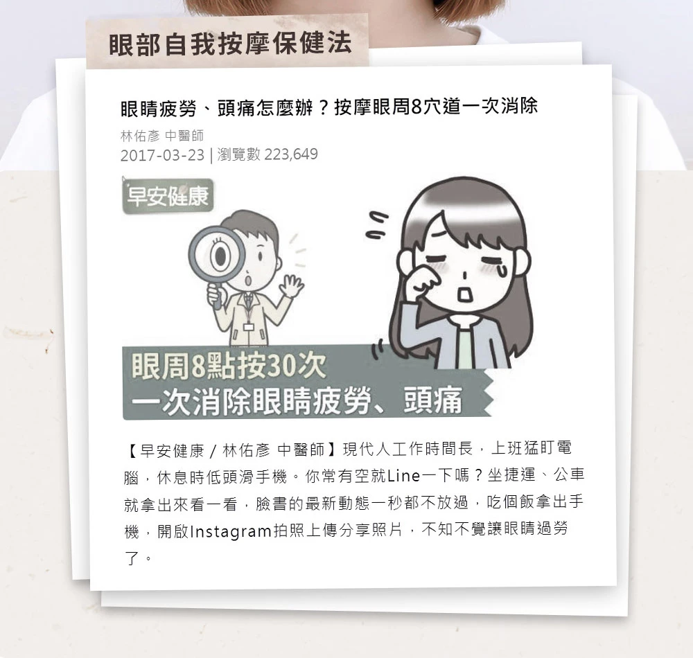 ❷ 兩側大面積熱敷,有效舒緩放鬆眼周