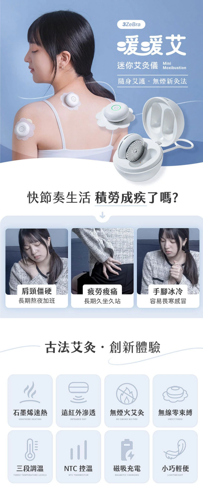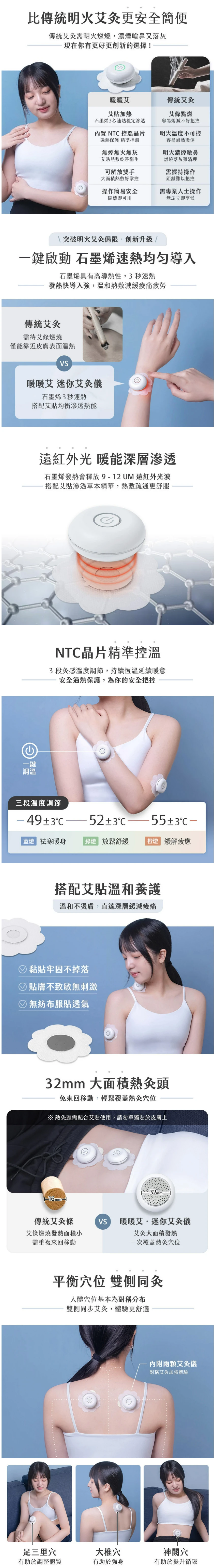 ※ 艾灸儀需搭配艾貼使用,請勿直接貼合於皮膚表面,以免高溫燙傷。