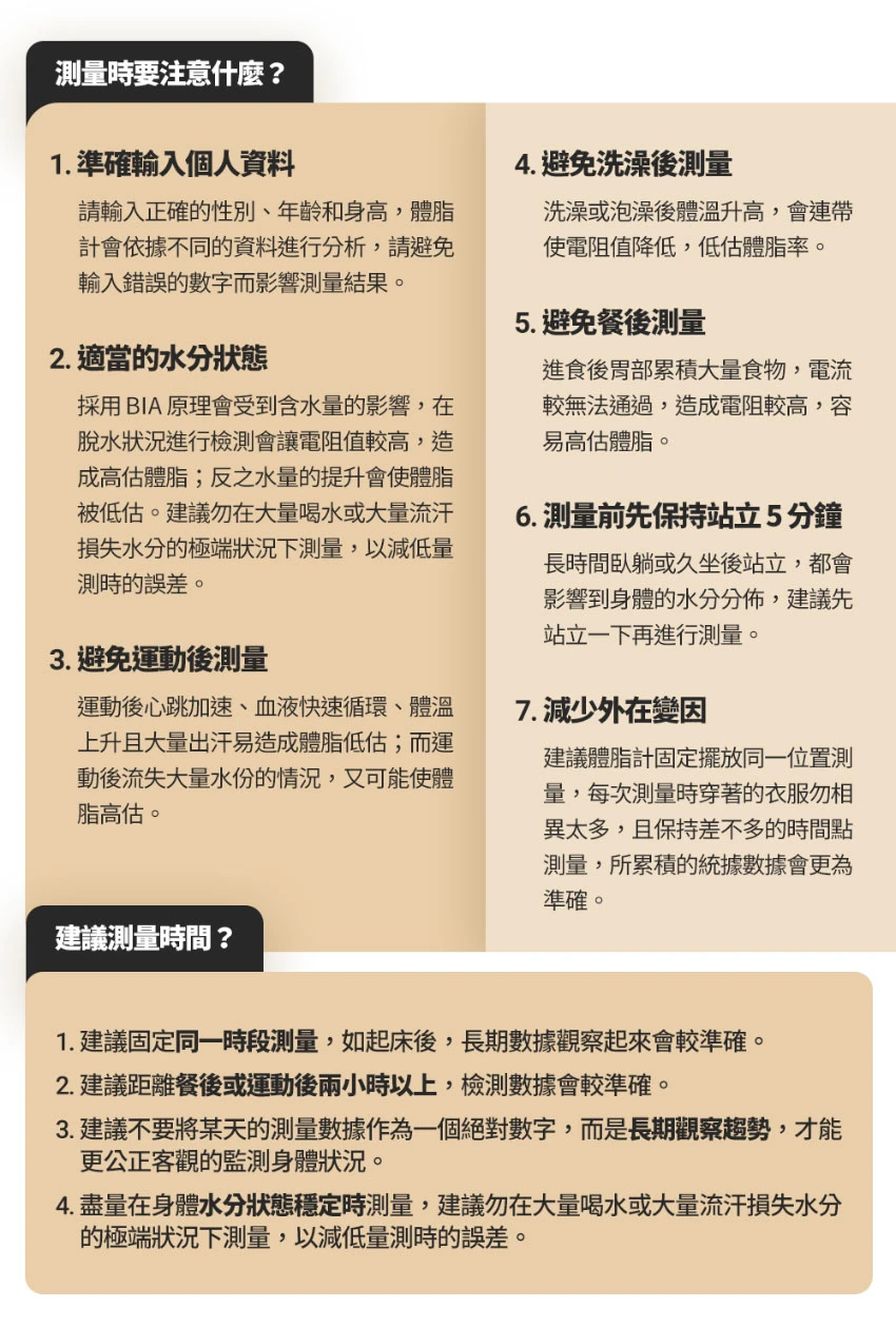 1. 本產品為家用體脂計,僅作為健康紀錄用途,非醫療器材。