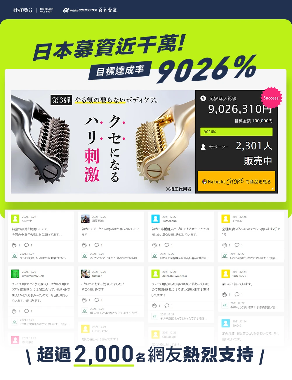 ▍ 日本募資近千萬,目標達成率 9026%!