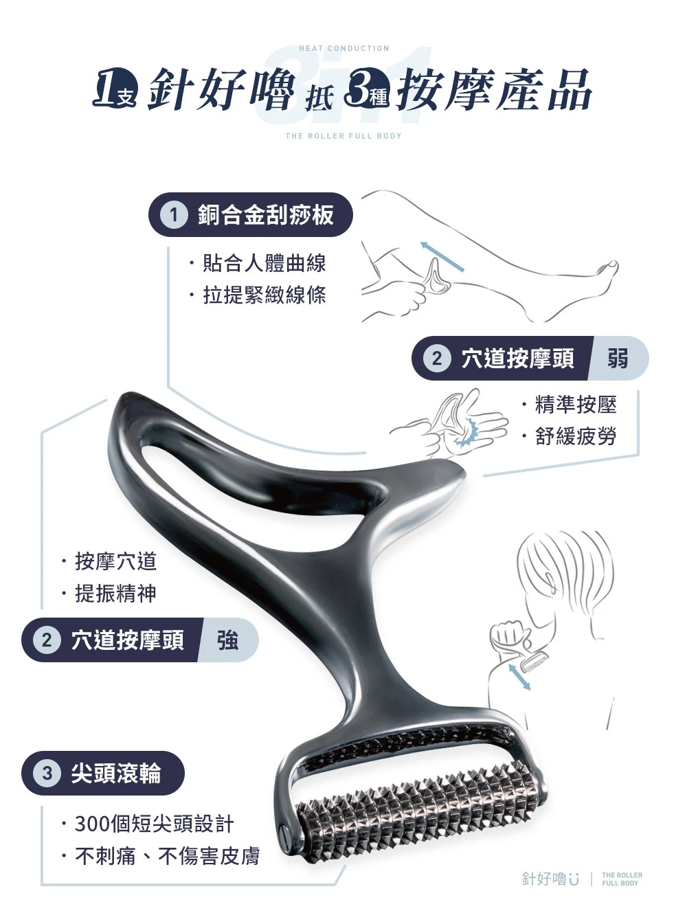 針好嚕︱ 三合一 按摩刮痧滾輪
