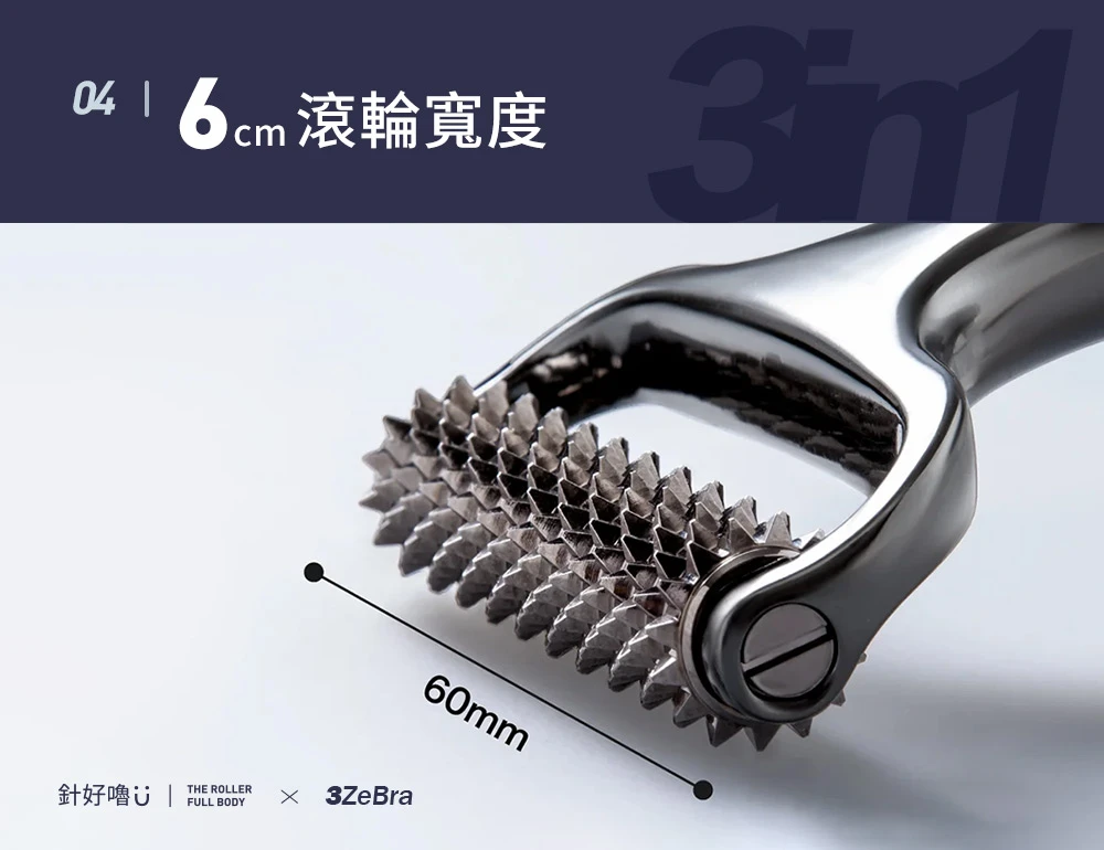 前所未有的寬度,使滾輪更好嚕,頭皮越嚕越舒適。