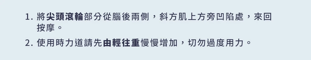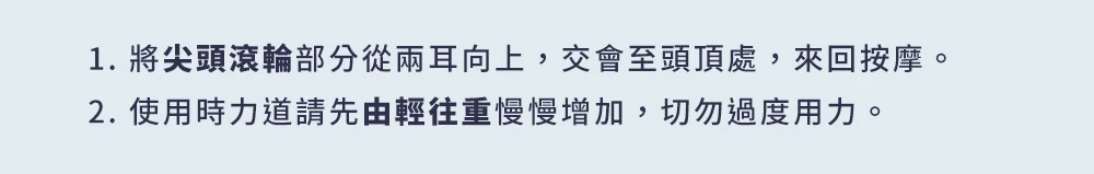 ?? 按摩力道請依個人承受的舒適程度為主,切勿太用力唷!