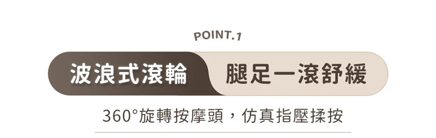 ❷ 波浪式滾輪,360° 按摩頭仿真指壓揉按