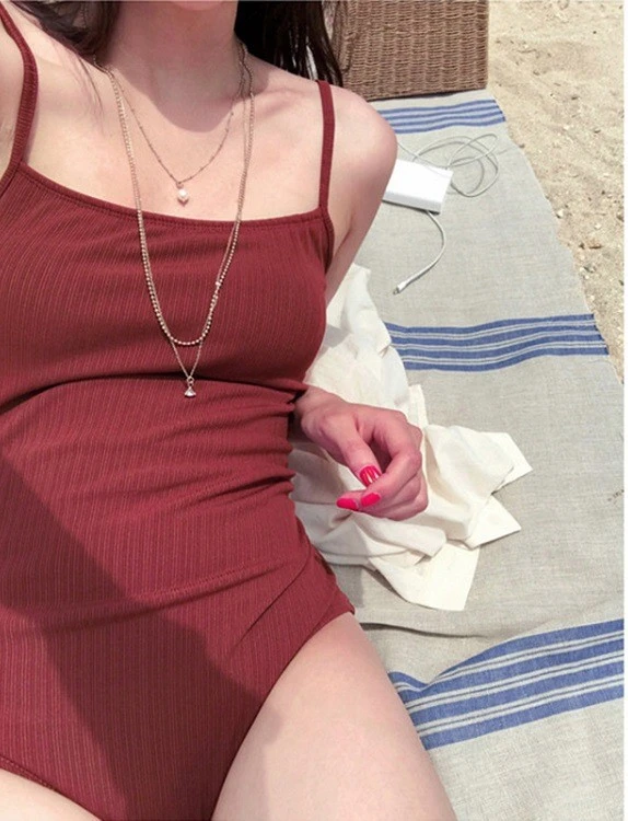女士泳衣2025新款高級感紅色綁帶性感連體遮肚子顯瘦泰國海邊度假