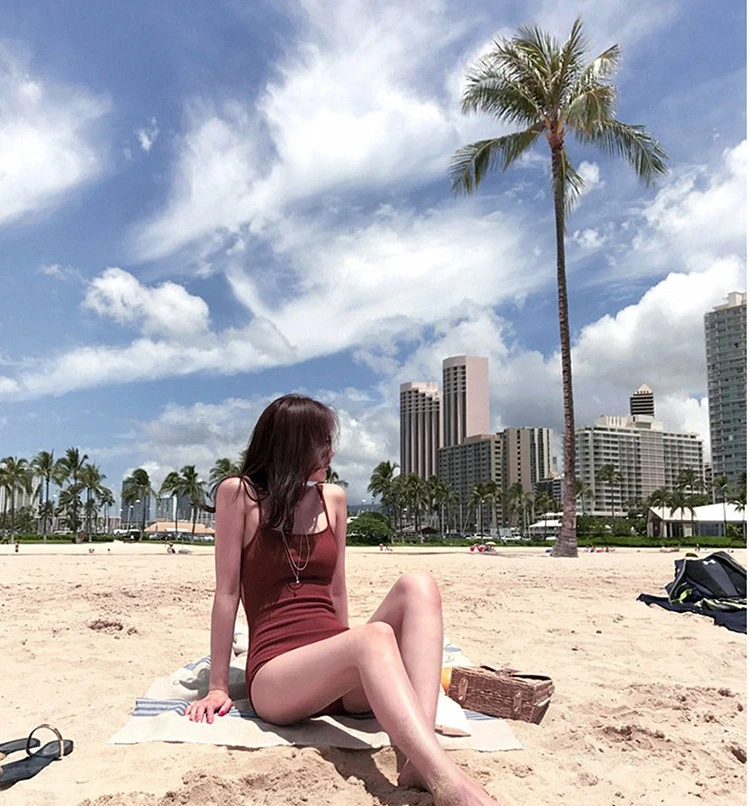 連身泳衣 新款法式高級感純欲風性感純色高腰聚攏顯瘦遮肚溫泉連體泳衣女