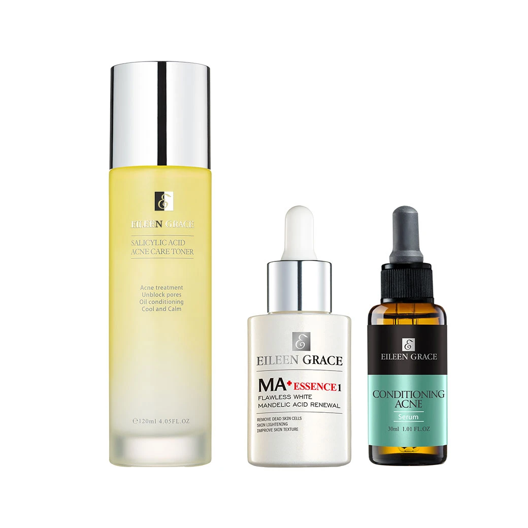 水楊酸面皰控油細緻毛孔化妝水120ml*1+20%杏仁酸激亮煥膚精華原液30ml*1+極淨透碳深層喚白黑凍膜300ml*1