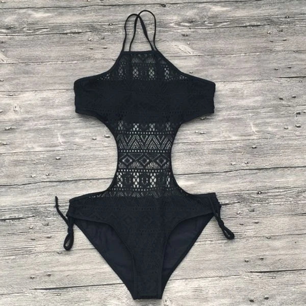 2023新款連體泳衣綁帶比基尼歐美女露背性感溫泉度假一體式泳衣