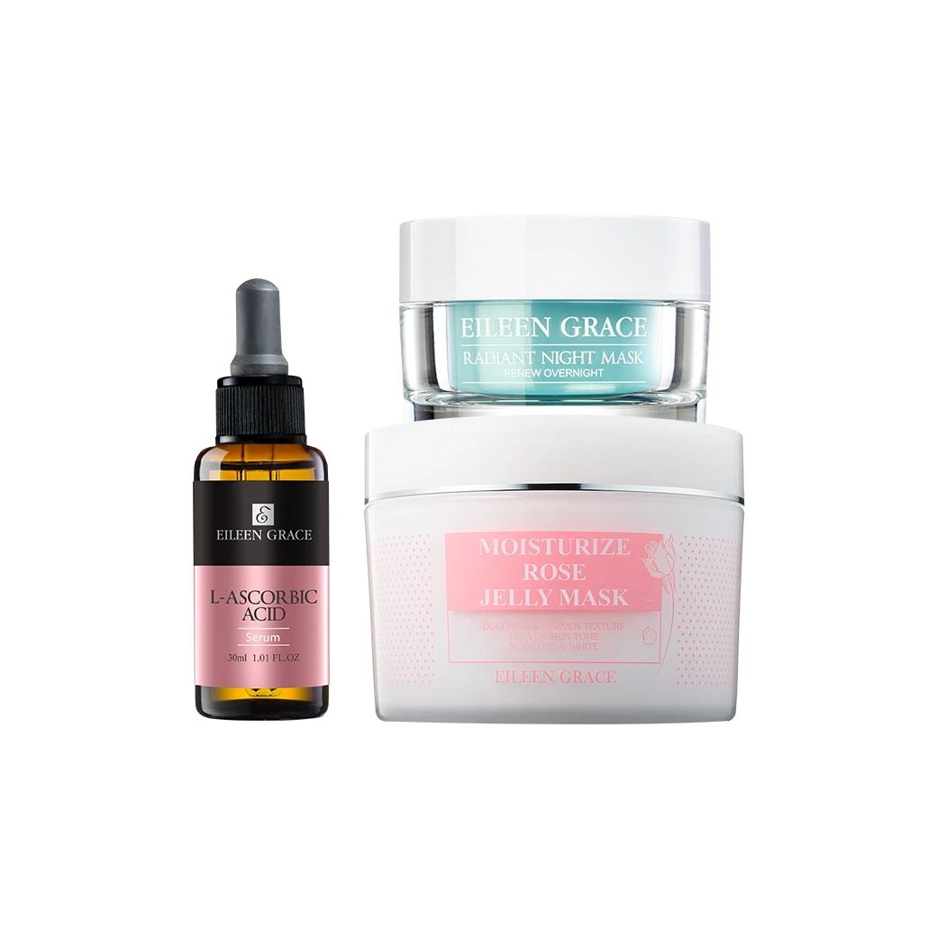 超水嫩晚安凝膜面膜50ML*1+ 維他命C淨白光感精華液 30ML*1 + 玫瑰凍膜極肌潤-玫瑰花保濕晶凍300ML*1